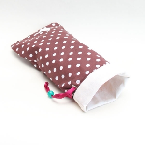 Pochette en tissu rouge à motifs beiges, doublure beige