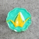 Bague en bulle de résine en forme de fleur, légère et mystérieuse, renfermant une cocotte jaune sur un fond vert lagon.