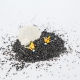 Boucles d'oreilles avec petites grues jaunes aux rayures parfois oranges. Posées sur une petite perle jaune et suspendues à un fil bleu métalique.